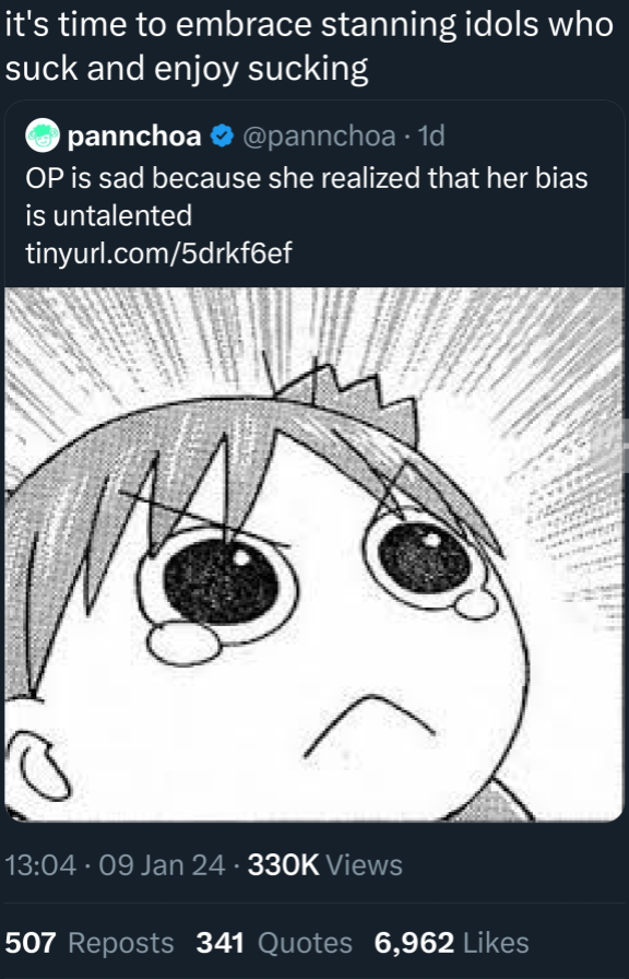 Anyway, second, and more relevant, is just to think that people aren't watching their SNS intake. I know it might sound unbelievable to some of you, but it is possible to be on X/Twitter, or Instagram, or Discord, or anywhere else and not lose your sanity having to watch the latest fanwar or stan offensive or nuclear hot take go by. You just have to be selective.