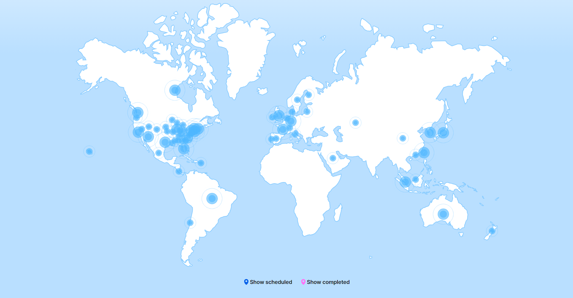 As previously reported, the site's unfortunate and mistaken leak of its beta resulted in a noticeable amount of negative sentiment from fans, and the release of the project in its final form (even with the ability to elect a different country than your own to vote for with a purchase) did little to quell those fans' concerns. A few even went so far to organize a boycott of the project, citing "pay to win" and "cash grab" concerns and lack of tour location diversity. Others, undeterred or intrigued at the prospect of either or both A)getting a crack at previously unavailable merchandise and B)increasing chances of a show to come to their hometowns, purchased without hesitation in support of the project's launch. As of a week's worth of data, the density of purchase distribution appeared to reflect places that have had the most recent tours in the last two years.