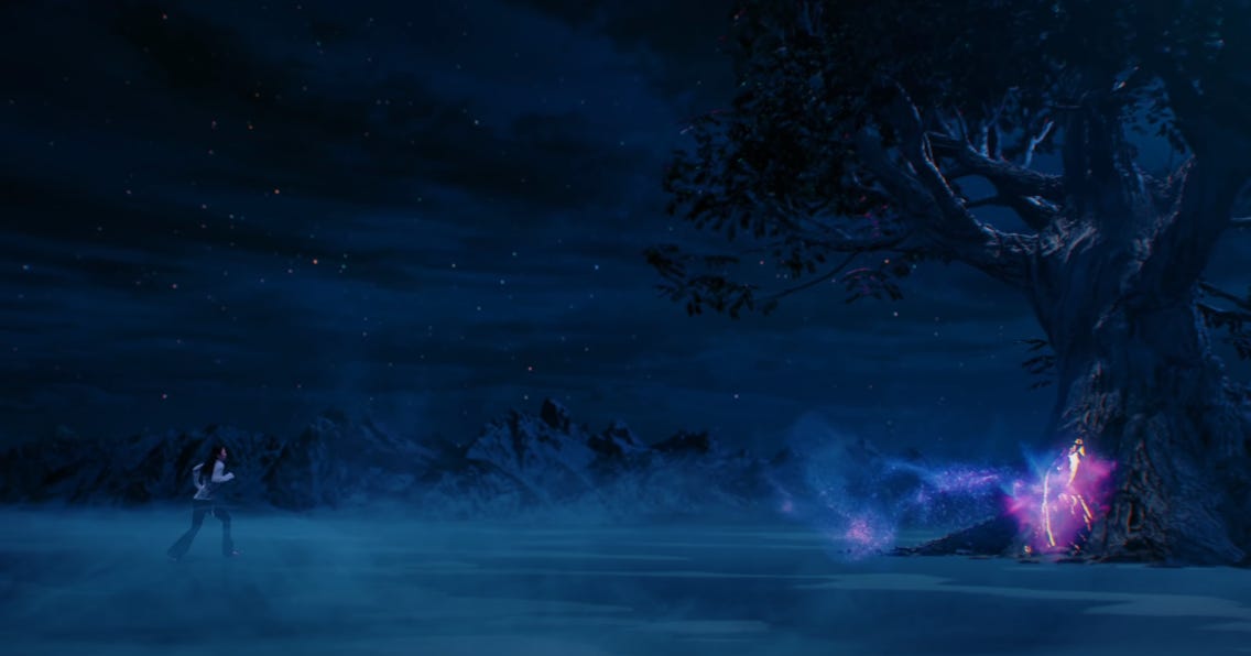 Other shots include Yoohyeon being chased through the landscape and isolated in an empty ruin, SuA running into the Tree’s sanctum pursued by an unidentified smoke she eventually has to defend herself against, and Siyeon lost in a purple fog. All of these serve as visual aids to show how both symbolically and literally, the negative words now intertwined with the corrupted Tree go on the offensive against Dreamcatcher’s tree spirit characters. If it sounds like an analog to how negative, hateful words can be weaponized against the target of a witch hunt (either figurative or literal), that’s exactly what it is.