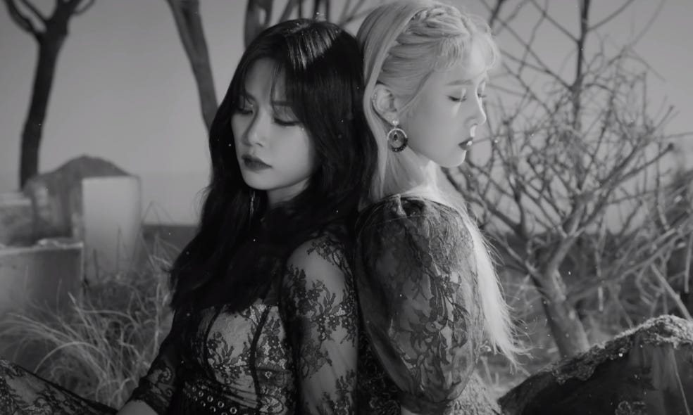As it relates to “Scream”, there’s a kind of ritual chant-like nature to the “devil eyes” portion of the song — it’s spoken, not sung, by both Dami and Gahyeon, and to me, appears to be both an attempt to ward against targeted evil, but also open one’s eyes to it, to be aware of it, and perhaps, to not be so fearful of it.