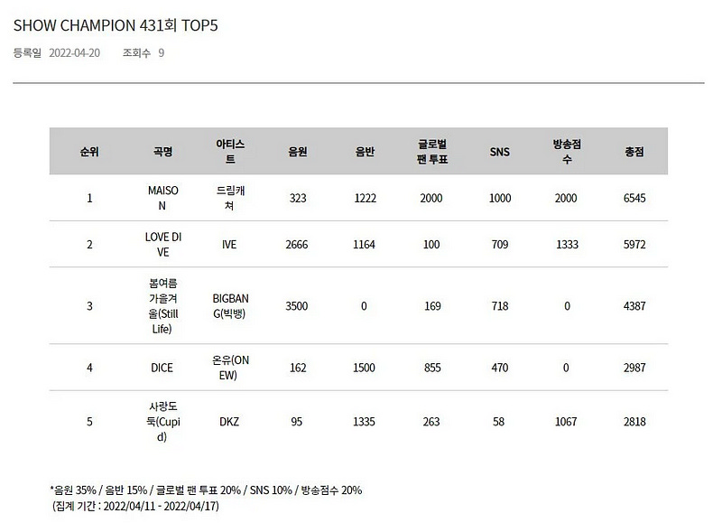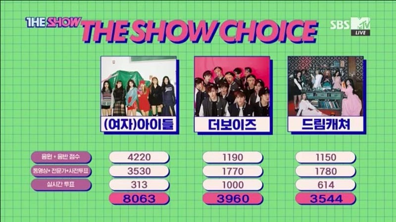 But at least for this time around, the stars seemed to align for Dreamcatcher. There were no immensely popular survival show groups, unexpected cancellations, out-of-left-field participants riding a wave of superior views, or anything else weird that might derail Dreamcatcher’s chances. Instead, BIGBANG cut into IVE’s digital score, lowering it while taking the maximum, Dreamcatcher was able to achieve full Broadcast points due to a well-timed Weekly Idol appearance, and the entirety of the pre-vote was won, a voting effort that involved multiple fandoms and tireless dedication. Combined with Dreamcatcher’s week 1 YouTube and sales numbers, the result was a small, 400ish point lead — but it was enough to be able to send Dreamcatcher up to the stage to accept their reward, thank everyone they could, and let out the cathartic emotion that comes from the realization that, at least today, they’d reached the top. Like many first wins achieved by K-Pop groups, Dreamcatcher’s validated years of long, often grueling hours of training, working out issues with fellow members/co-workers along with their own feelings of self-doubt and hardship, and achieving aspirations that often start very early in life but take a long time to realize — if they ever even get there.