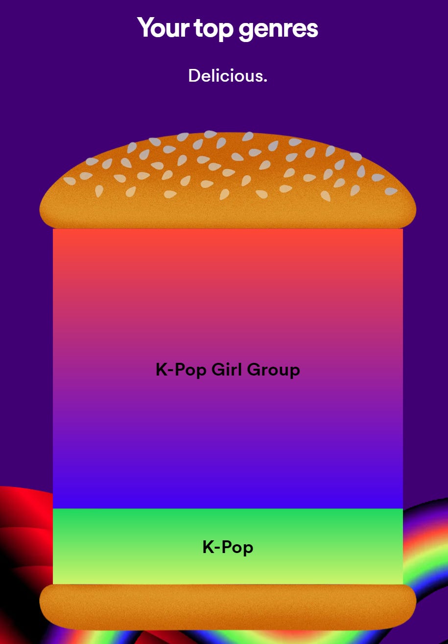 I’m not naive - I know that you can’t put the genie back in the bottle and go back to those halcyon days when were fascinated by the fact that we could tell our 100 followers or so that we had some cool food, tweeted while we sat on the toilet, or shared an old forum meme that went far and wide. But I do think that for just a couple days, we can just enjoy seeing what we listen to, perhaps find a new song or two, and start on the journey for next year’s Wrapped. Sometimes, it’s the simple things that bring us the most happiness, even during the most stressful of holidays.